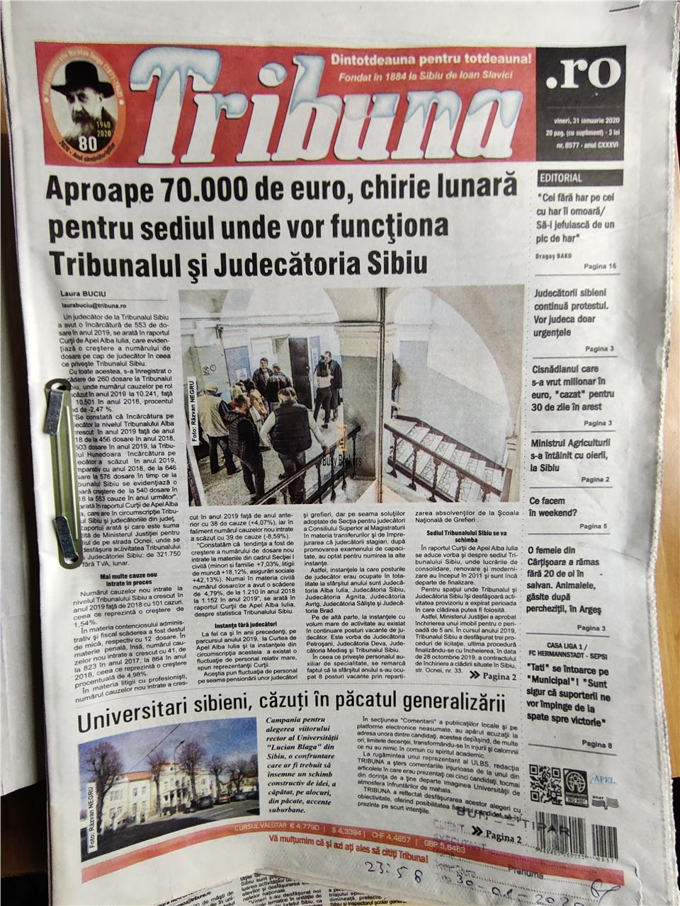 We offer for rent an emblematic building located at 38 George Cosbuc Street, the very space where the Tribuna editorial office and publishing house operated for decades. This landmark property for cultural Sibiu features a usable area of 1200 sqm, consisting of two buildings that tell the story of press evolution: an elegant structure from 1930 and a functional extension from 1993. Choosing this headquarters grants any organization immediate prestige, blending the intellectual tradition started by Ioan Slavici with generous spaces suitable for companies seeking a solid and recognized presence in the city.